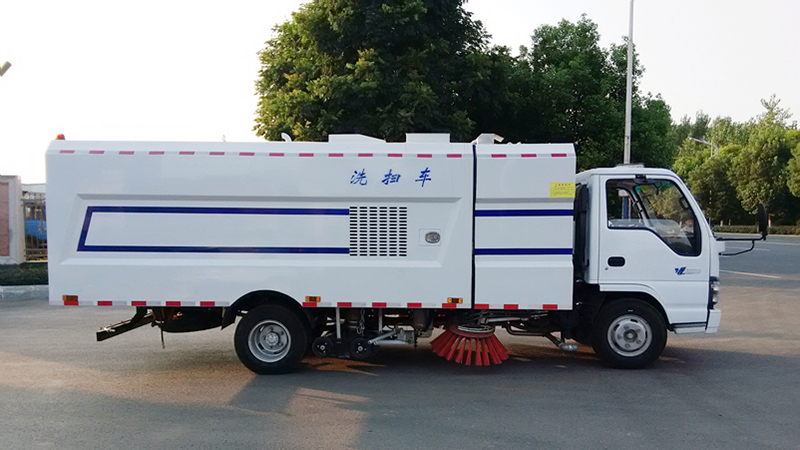 加裝副發(fā)動機、風(fēng)機、清水箱、垃圾箱、中置吸盤,工作視頻探頭,自動脈沖清理功能,液壓系統(tǒng)、專用裝置電控系統(tǒng)和副車架等改裝而成。
