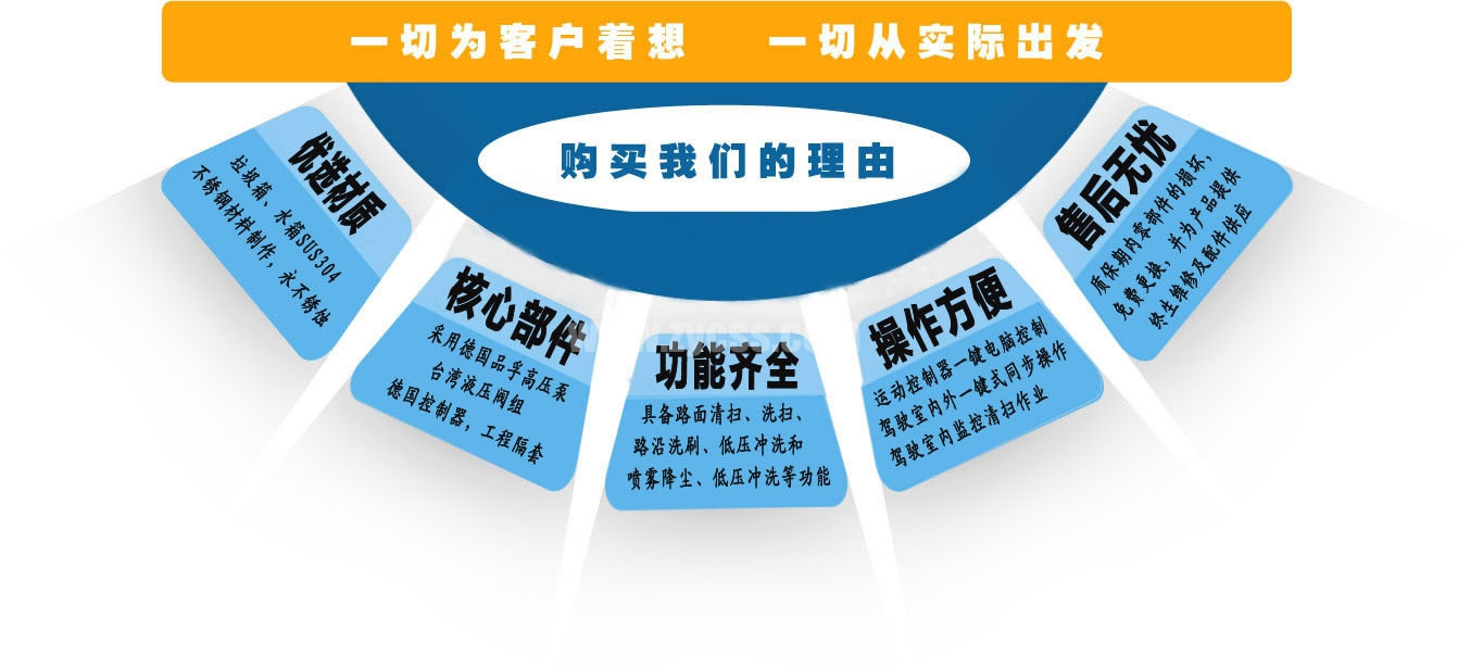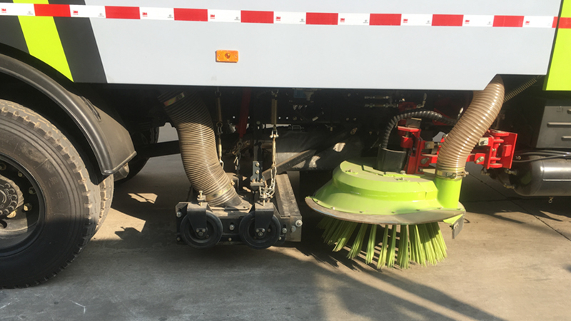 2、采用副發(fā)動機(jī)專門驅(qū)動風(fēng)機(jī)和液壓系統(tǒng),保證行駛過程中能繼續(xù)工作,保證清掃過程的連續(xù)性。 3、采用"中置四盤刷+后置吸嘴"的結(jié)構(gòu)布置,便于清掃裝置與吸嘴的調(diào)整和維護(hù),轉(zhuǎn)場時整車通過性好。 4、副發(fā)動機(jī)與風(fēng)機(jī)之間的傳動設(shè)置設(shè)有自動離合器,可保證副發(fā)動機(jī)空載起動和停機(jī)時與風(fēng)機(jī)的自動脫離,降低對副發(fā)動機(jī)的沖擊,提高了副發(fā)動機(jī)的工作可靠性和使用壽命。 5、掃盤有遇障避讓保護(hù)功能和復(fù)位功能,遇到障礙物后回縮,越過障礙物后復(fù)位。 6、根據(jù)不同清掃工況,在不增加副機(jī)油門的情況下,實現(xiàn)掃盤高中低三檔調(diào)速,即能保證在各種污染狀況下都有良好的清掃效果,同時節(jié)省油耗以及刷毛的損耗。 7、采用可隨路面自動找平的全浮動式吸嘴,吸塵效果好,使用壽命長。 8、進(jìn)口液壓閥組,能保證整車的液壓動作的穩(wěn)定性和流暢性。 9、進(jìn)口液壓馬達(dá),能保證掃盤的工作穩(wěn)定性,使用壽命長。 10、進(jìn)口原料制成的外翻式吸塵管,有效防止吸塵管被劃破、凍裂,增加使用壽命。 11、精密無縫冷彎液壓油管,內(nèi)壁無氧化雜質(zhì),保證液壓油路清潔,不堵閥。 12、掃盤刷臂內(nèi)使用高性能工程塑料隔套,耐磨性好,免打黃油免維護(hù),節(jié)省人力物力。 13、不銹鋼水箱、垃圾箱,可抗一般性腐蝕,增加箱體的使用壽命。 14、超寬后門且大于90度的開啟角度,更易于傾倒垃圾,清理垃圾箱。 15、垃圾箱傾翻角度大于48度,易于傾倒垃圾。 16、可加裝前沖、后灑、噴霧、自潔卷盤、作業(yè)監(jiān)控系統(tǒng)、輔助吸管裝置、推雪鏟等。 ![]() 產(chǎn)品功能特點