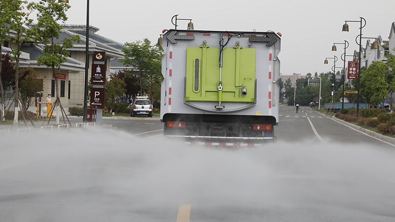 1. 在洗掃車后部垃圾箱下方配有噴霧噴桿,噴霧噴桿上裝有多個噴霧噴嘴。