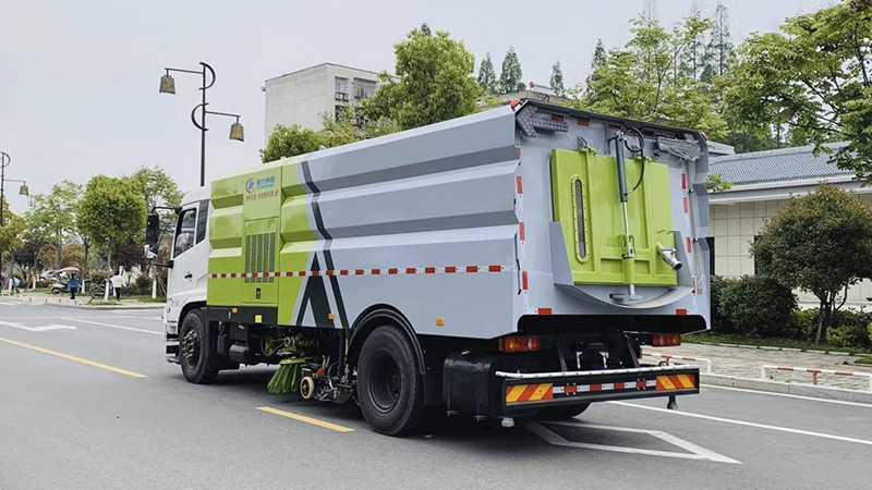 8)采用先掃,后沖刷,再吸收的工作方式,能將垃圾及污水一次清掃、沖刷、吸收干凈。路面作業(yè)后無塵土,無積水;